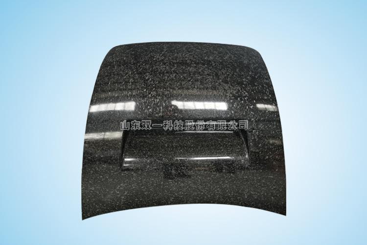 该产品采用片状碳纤维短切纱和连续纤维布,采用VARI工艺生产成型。该工艺具有成熟度高、周期短、产品重量轻、制造成本低等优点,可应用于各种车辆饰件的制作。