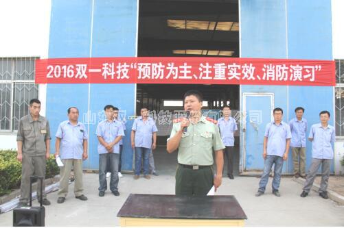 2016年6月是双一科技第五个安全活动月。安全是公司的生命线,为进一步增强员工消防意识,提高员工对火灾的应急扑救处置能力,根据公司“安全活动月”安排,6月28日、29日,双一科技总公司、陵县分公司、武城分公司分别举行了车间内火灾的应急扑救实战演练。