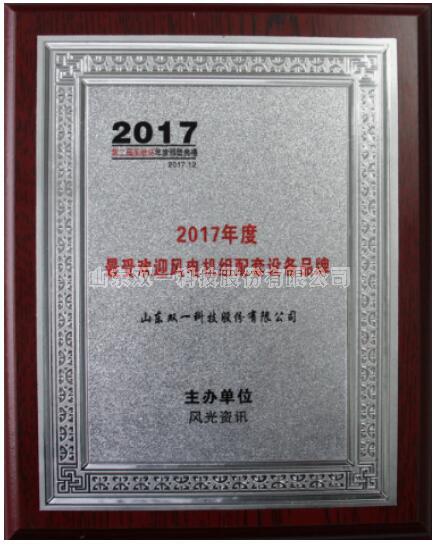 12月28日,由风光资讯主办的2017年第二届“风能杯”年度颁奖典礼上,双一科技凭借创新发展模式荣获“2017年度最受欢迎风电机组配套设备品牌”奖项。公司将进一步依托领先的技术优势、丰富卓越的产品质量,满足客户需求,超越客户期望。