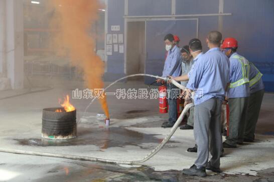 为进一步增强员工消防意识,提高员工对公司内火灾的应急扑救处置能力,双一科技邀请德城区消防大队,于2018年6月14日下午14:30在生产车间空旷地举行了一场消防实战演练。