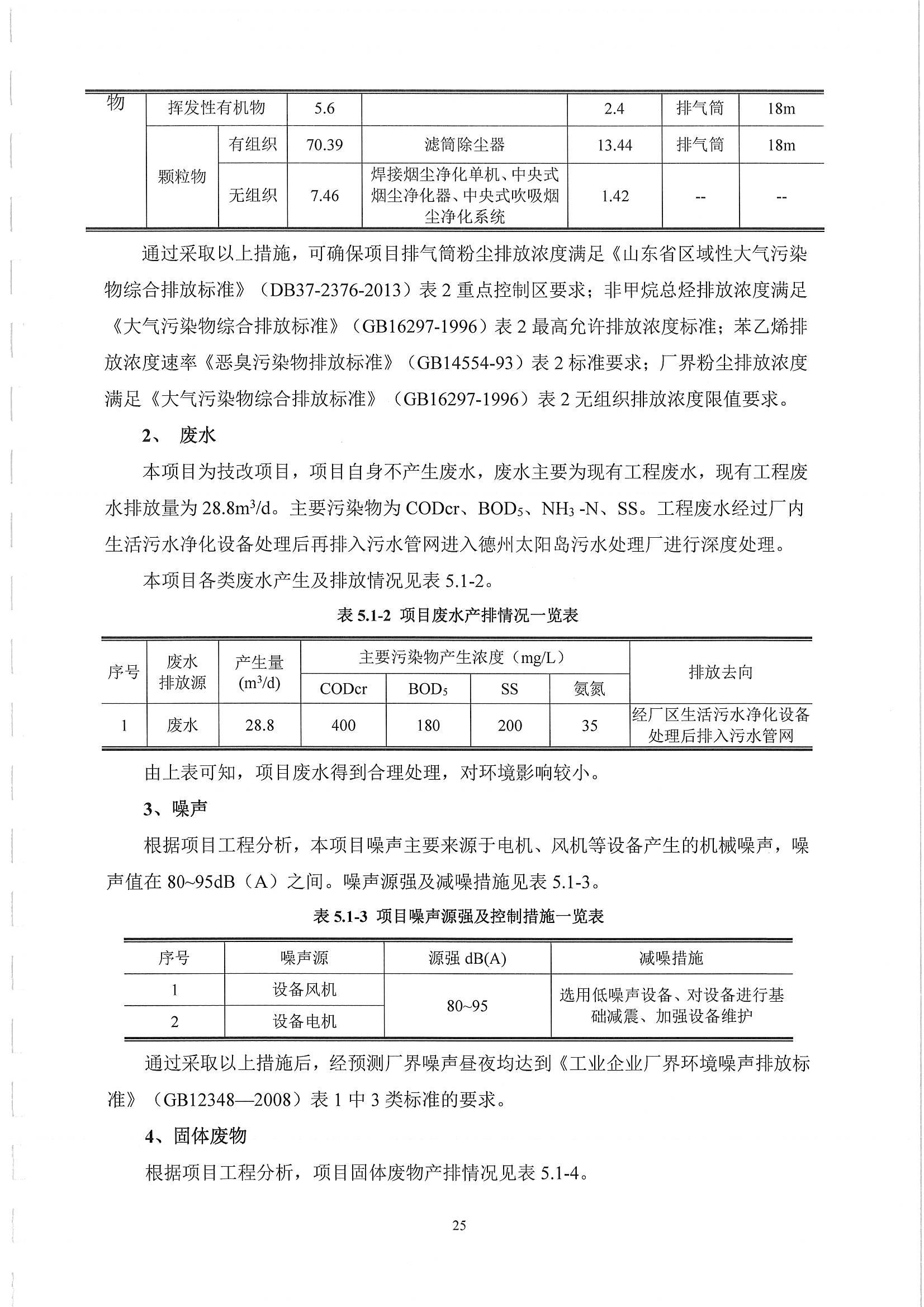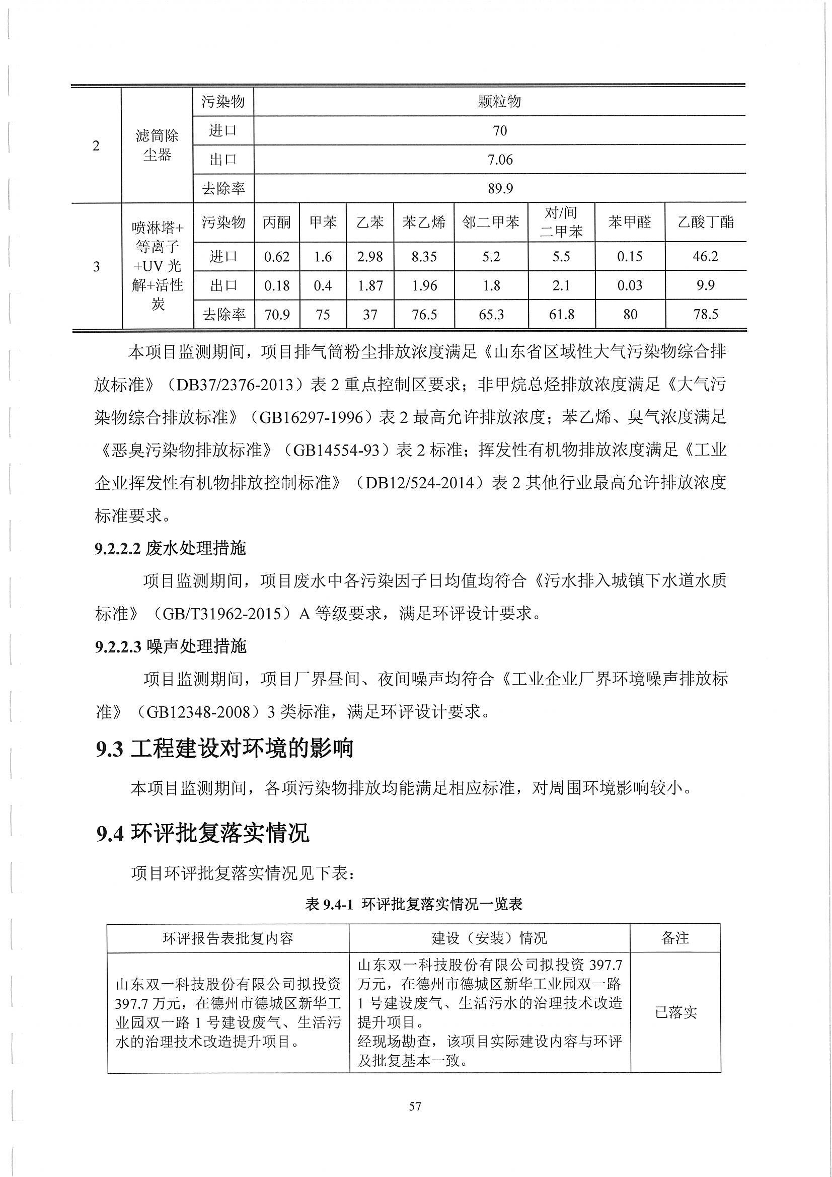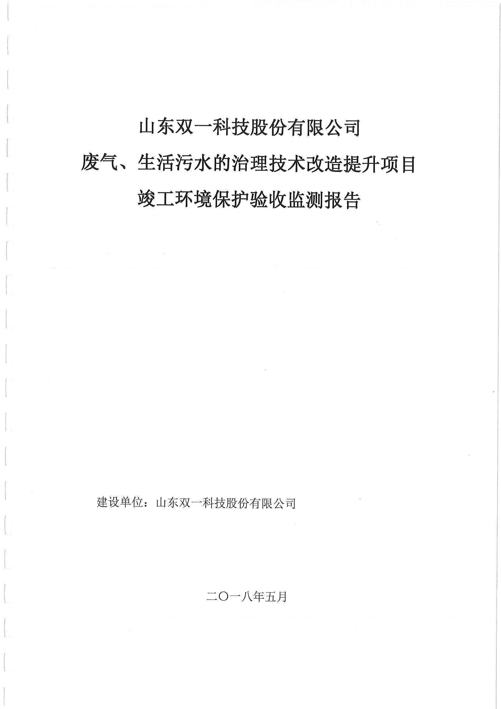 山东双一科技股份有限公司废气、生活污水的治理技术改造提升项目竣工环境保护验收监测报告