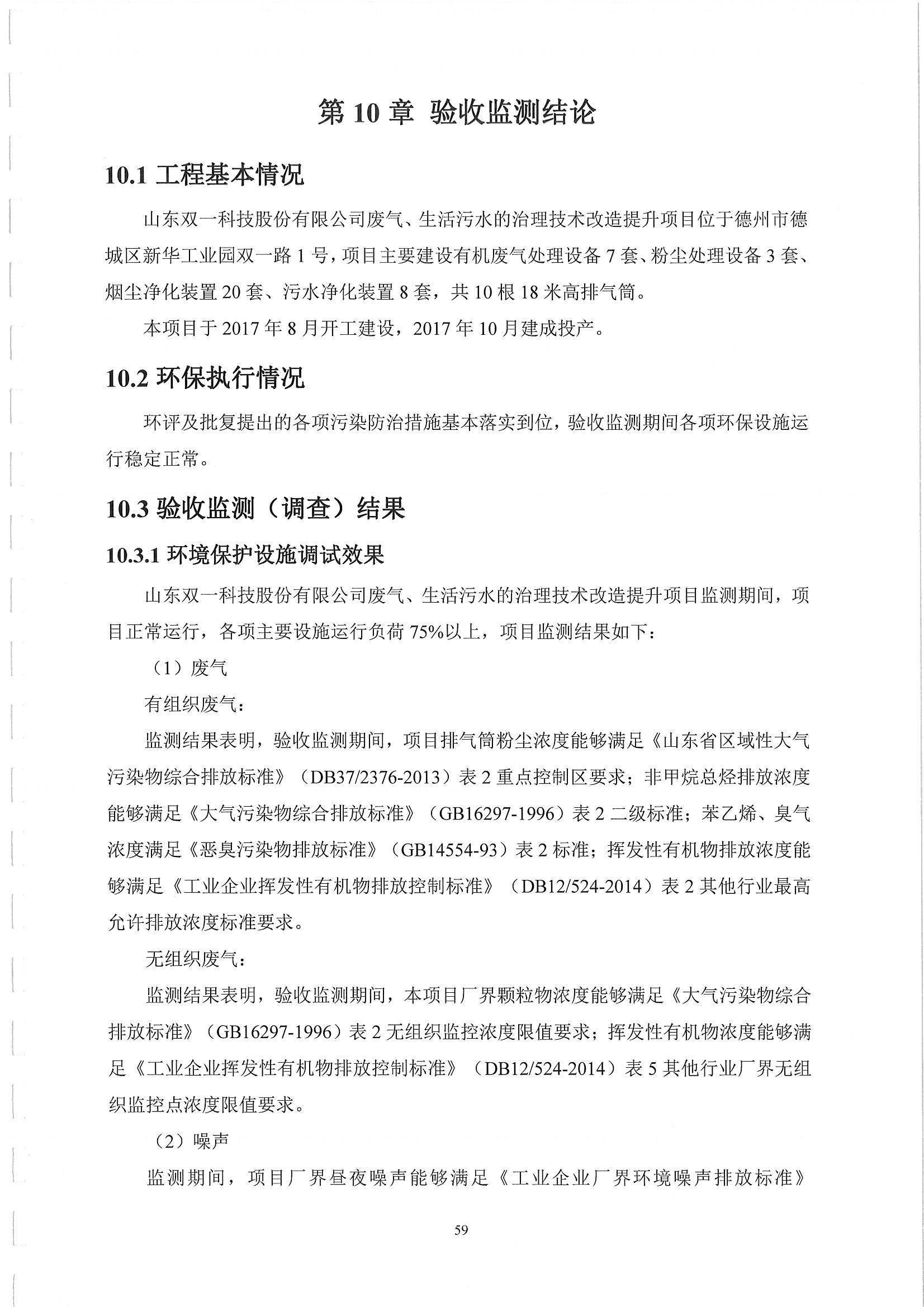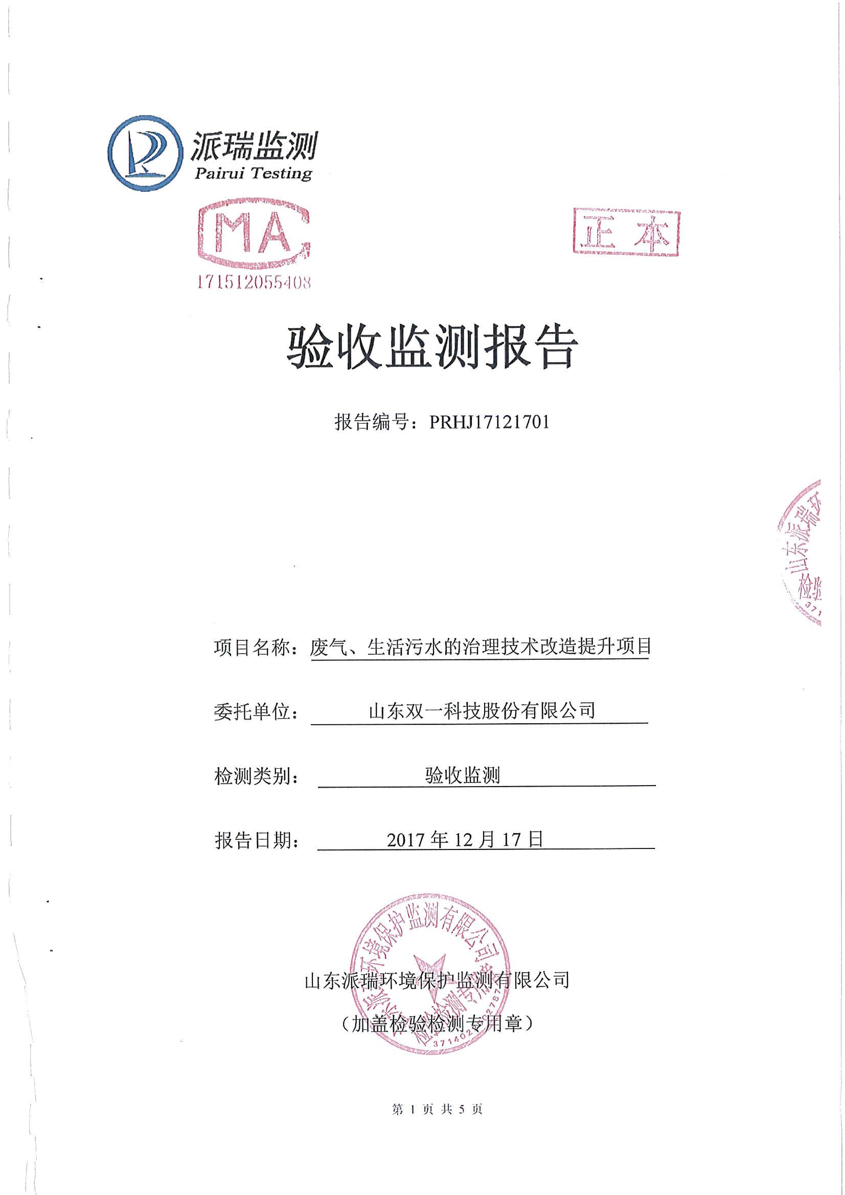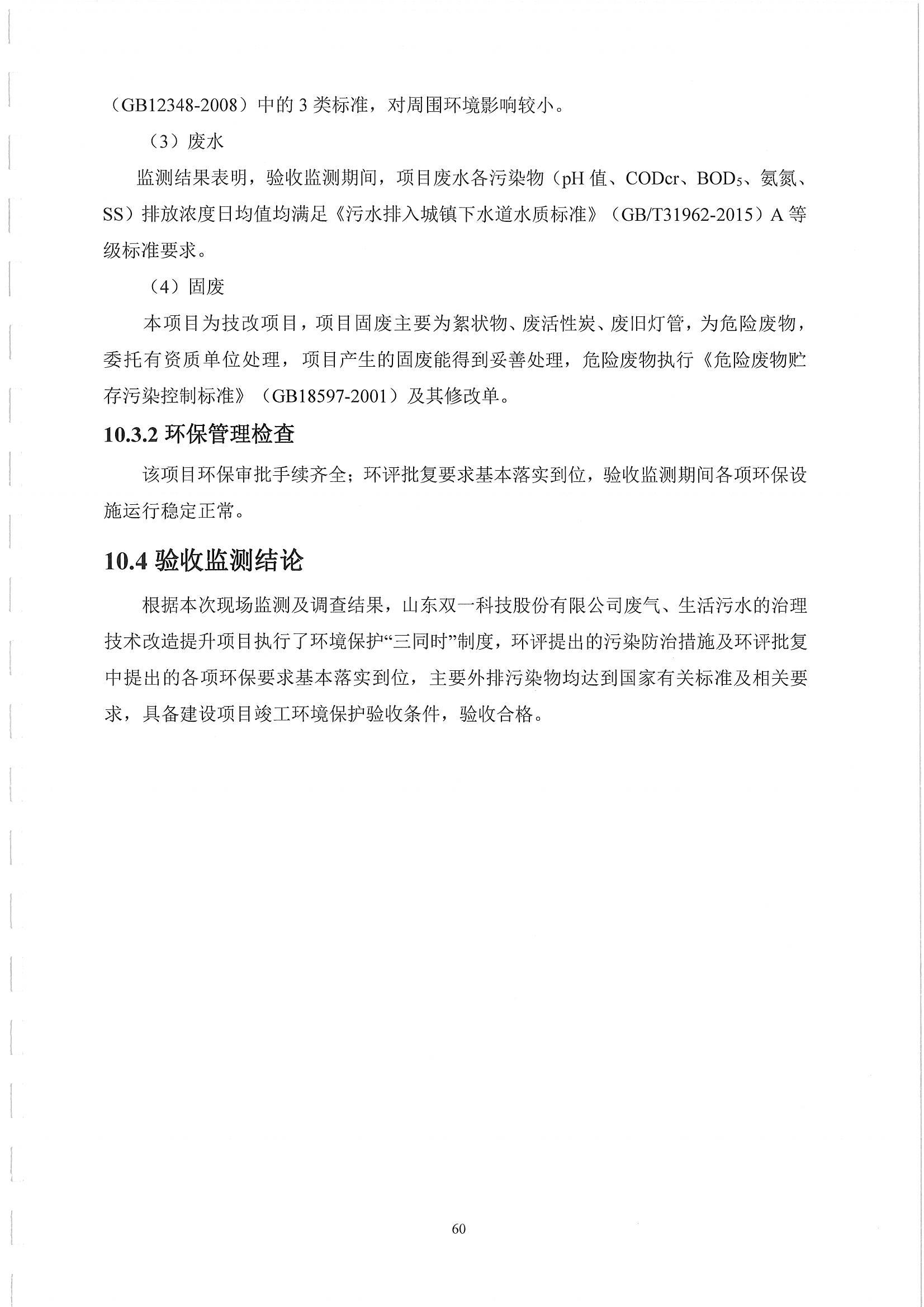 > 山东双一科技股份有限公司废气、生活污水的治理技术改造提升项目竣工环境保护验收监测报告