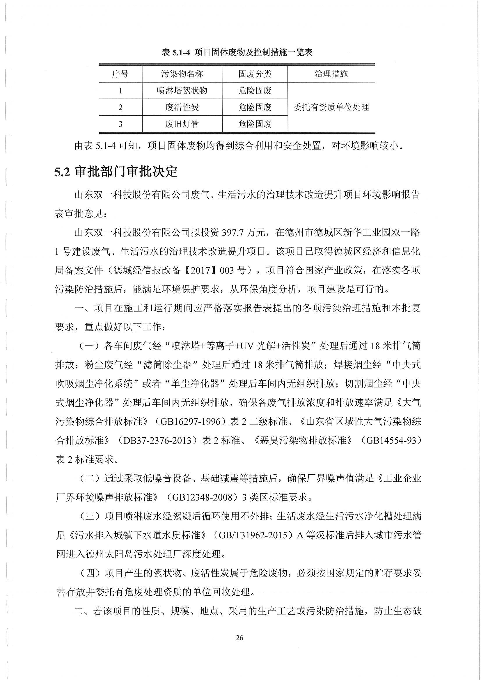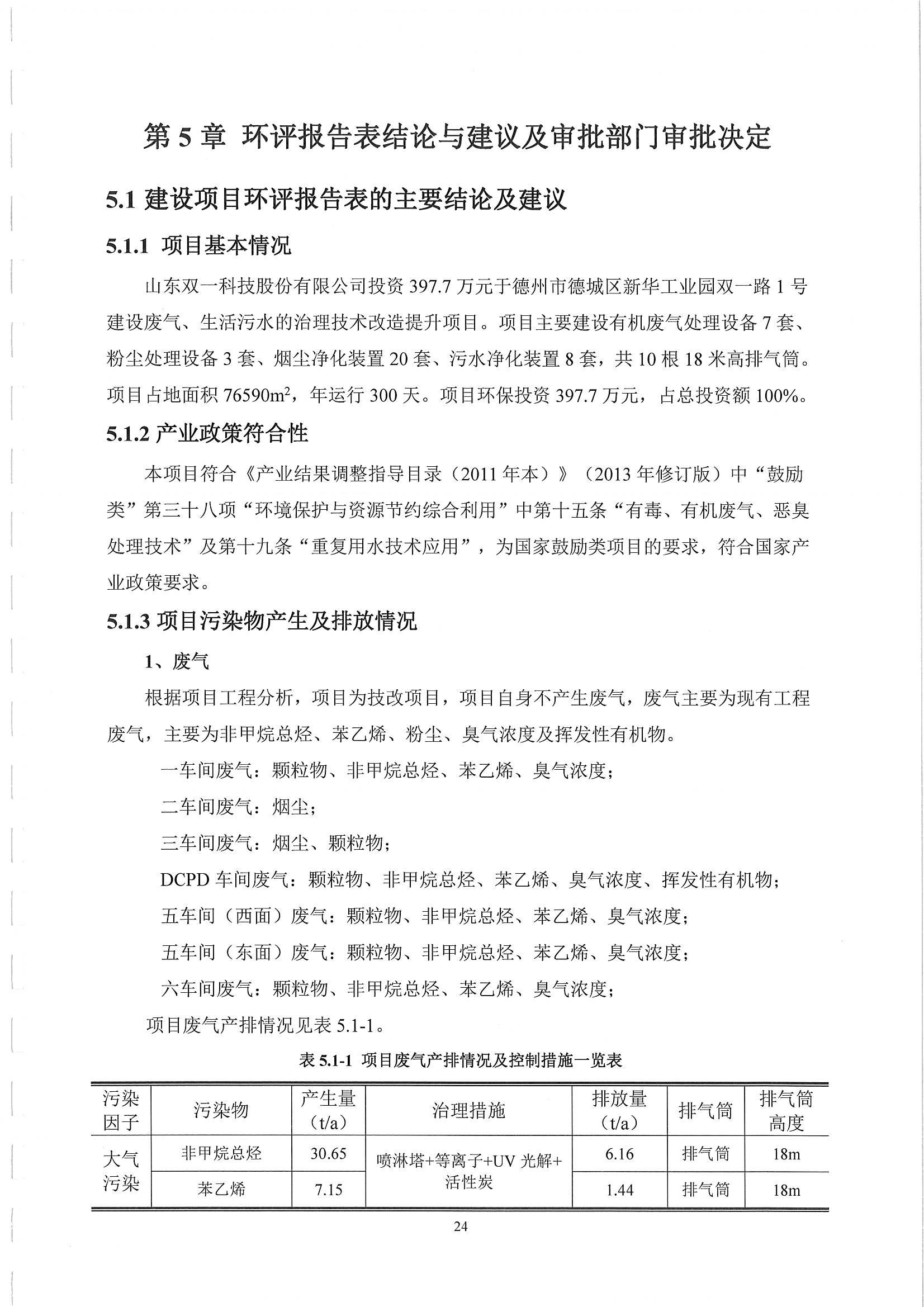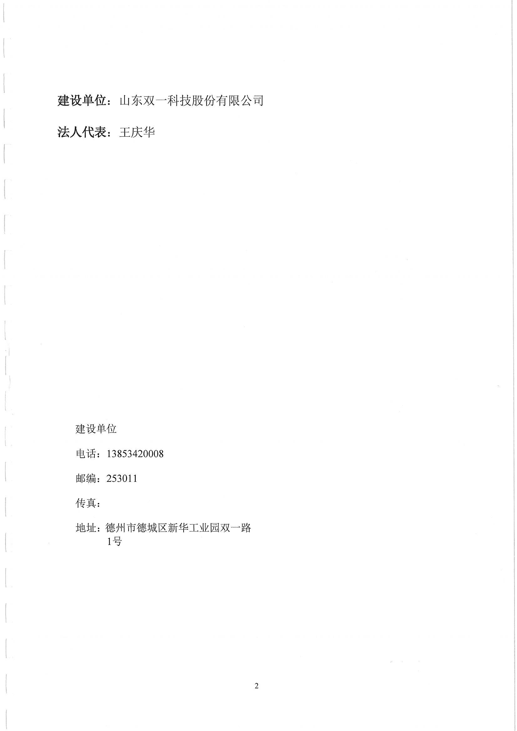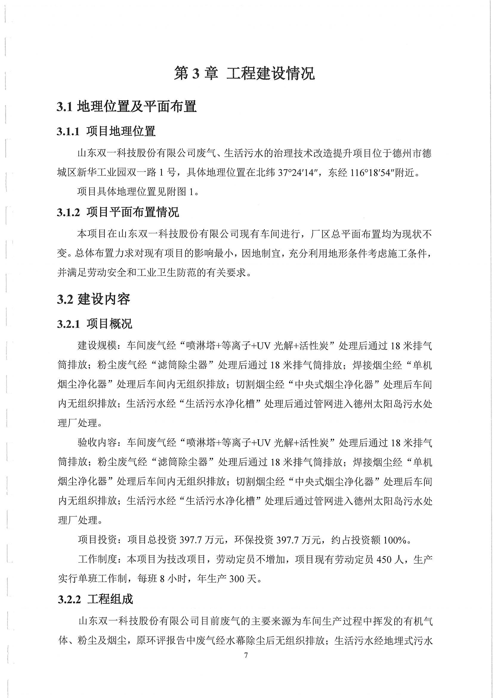 > 山东双一科技股份有限公司废气、生活污水的治理技术改造提升项目竣工环境保护验收监测报告