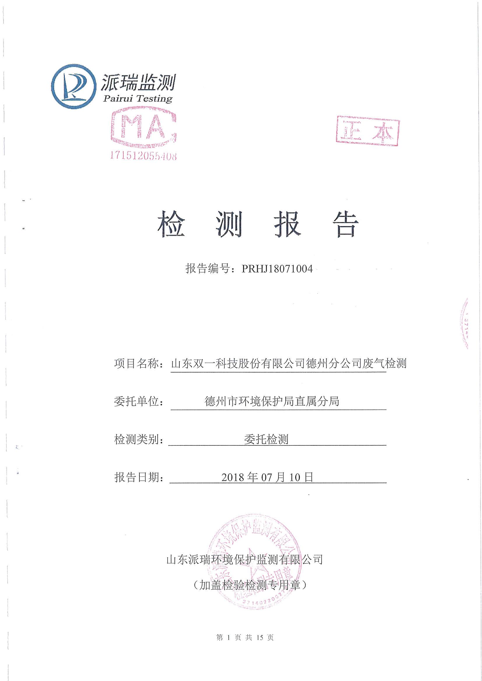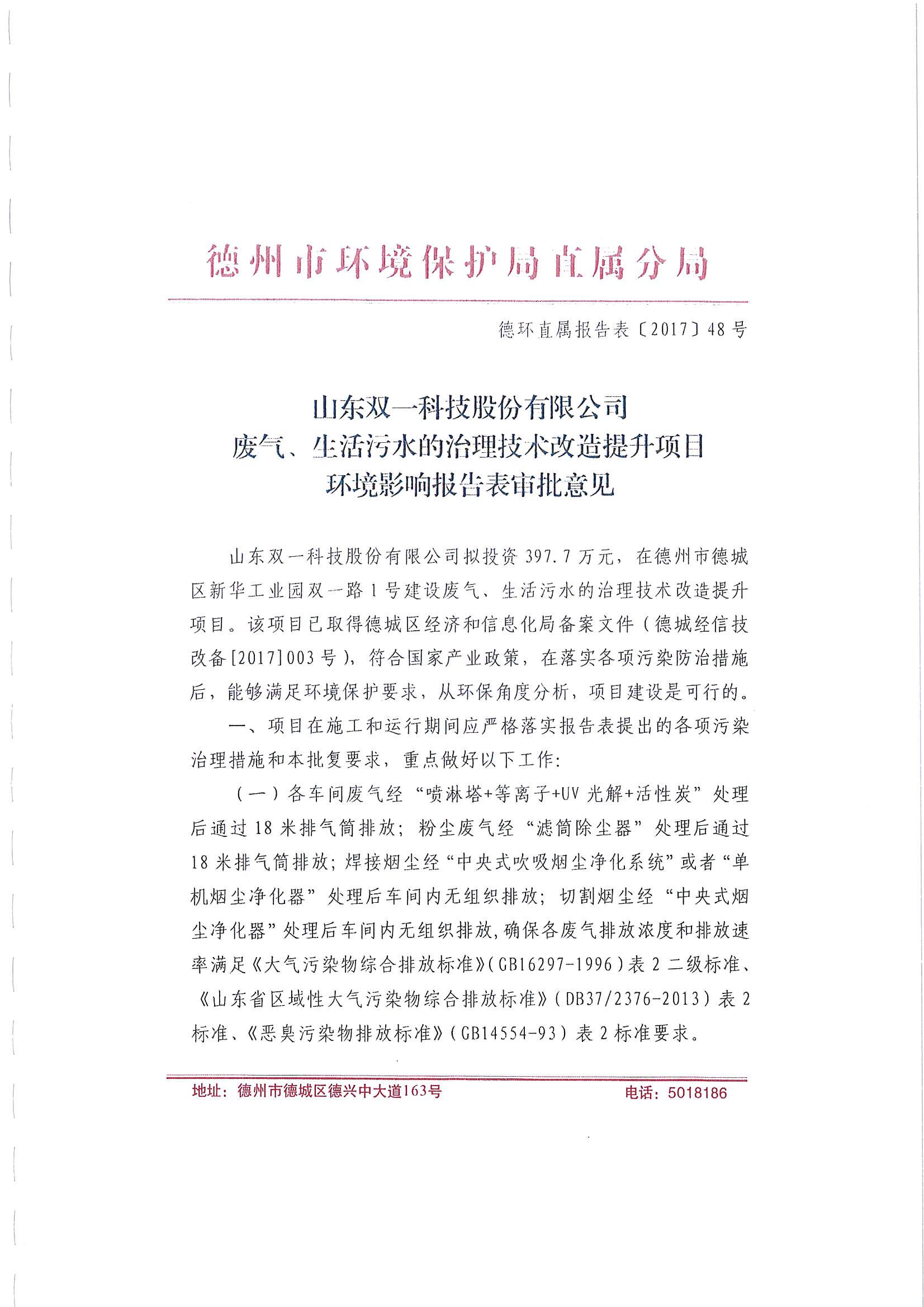 关键词:山东双一科技股份有限公司废气、生活污水的治理技术改造提升项目竣工环境保护验收监测报告 来源: 发布时间:2018-08-11