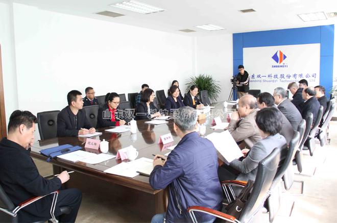 2019年3月13日,国家税务总局山东省税务局党委委员、总经济师黄玉远,山东省税务局第二分局局长、减税降费专办主任田克华一行在德州市税务局党委书记、局长亓圣平的陪同下来到双一科技就减税降费的落实情况进行实地调研,公司总经理姚建美、财务总监冯好真全程陪同。