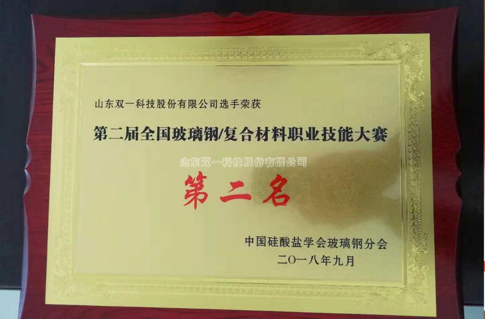 双一科技荣获全国第二届玻璃钢/复合材料职业技能大赛第二名的好成绩