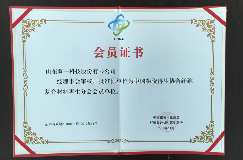 双一科技成为中国物资再生协会纤维复合材料再生分会会员单位