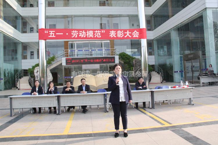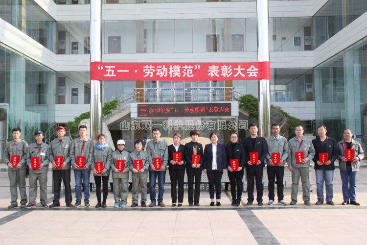 2019年4月25日,山东双一科技股份有限公司隆重举办了2019年度“五一·劳动模范”表彰大会。姚建美总经理为陈建东等19位员工授予五一劳动模范荣誉证书,并发表讲话。