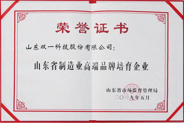 2019年5月10日,由山东省市场监管局联合省委宣传部、省发展和改革委、省工业和信息化厅、省农业农村厅、省商务厅、省文化和旅游厅等部门共同组织开展的我省2019年“中国品牌日”系列活动在山东大厦金色大厅隆重举行。会上发布了2019年度山东省制造业高端品牌培育企业名单,山东双一科技股份有限公司受邀参会并非常荣幸地被评为2019年度山东省制造业高端品牌培育企业。