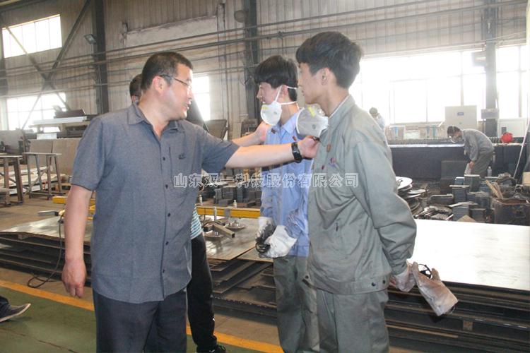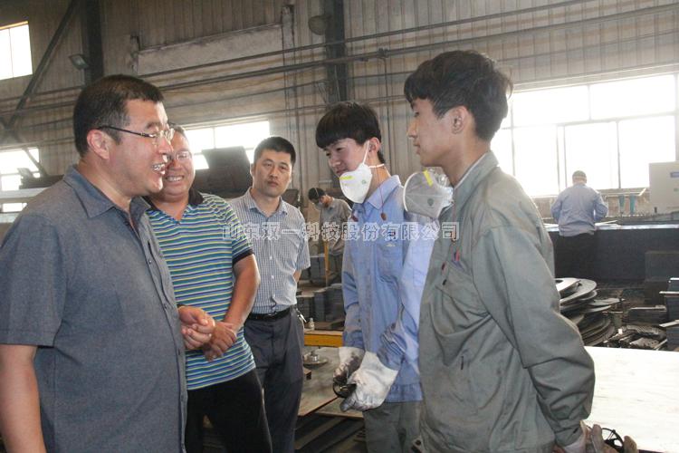 张文军校长一行首先看望了在双一科技工作的毕业生,详细询问了他们现在的工作、生活、岗位适应等情况,张文军校长看到毕业生们能够熟练的使用车床、电焊、喷涂机器人等设备非常欣慰,勉励同学们要继续踏实努力,用实践丰富知识,掌握更多的技能,提升职业素养。