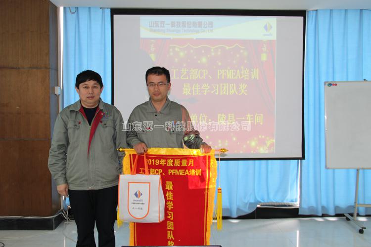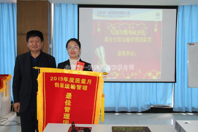 随后,公司高层对本年度质量月活动期间做出突出成绩的陵县分公司、德州生产部、陵县一车间、武城一车间颁发锦旗进行表彰。此次表彰是对部门成绩的肯定,更是对所有部门和员工的鞭策,在工作中更要牢记质量意识,不断提升产品品质。