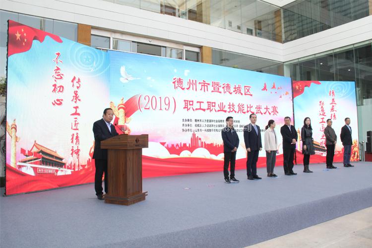 2019年11月5日德州市暨德城区职业技能大赛在山东双一科技股份有限公司拉开帷幕。德州市人社局党组成员、副局长贾丽君,德城区人民政府副区长纪勇,山东双一科技股份有限公司行政总监张伟等参加开幕式。