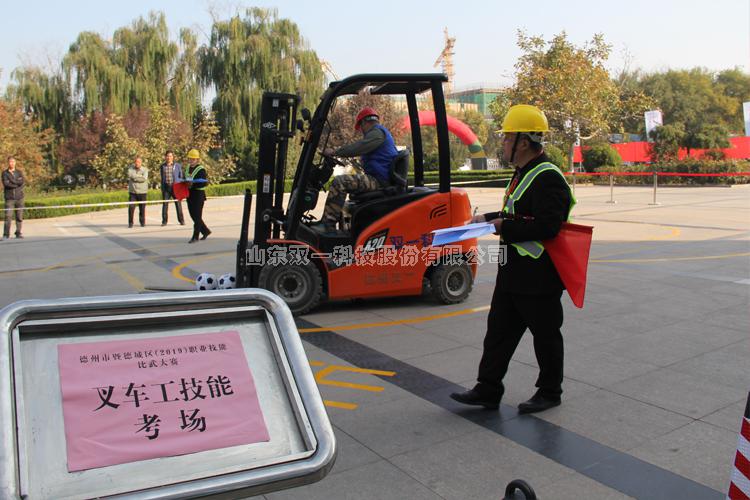 经过一天激烈的角逐,山东双一科技股份有限公司的祁志卫获得叉车组比赛一等奖,刘成、吴延治获得二等奖,侯学天获得三等奖 。