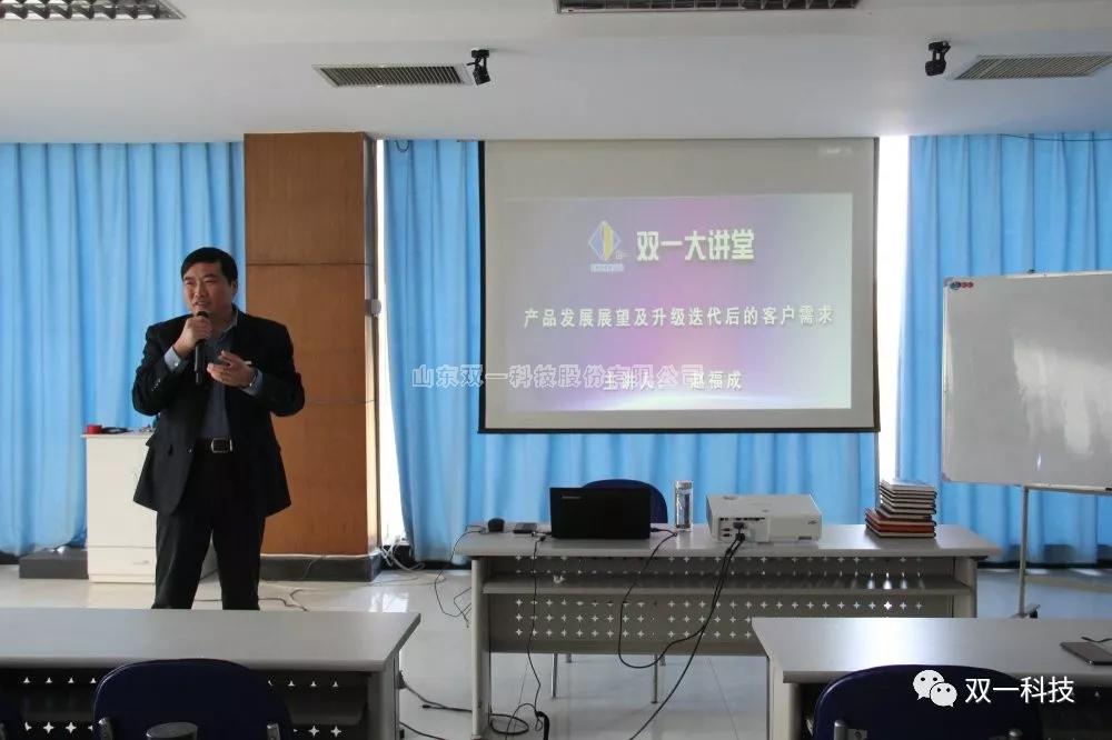 为准确的把控当前市场形势,谋划公司发展布局,更好的为明年工作做好提前准备,12月4日下午,山东双一科技股份有限公司常务副总经理赵福成为公司高管、中层、储备干部及销售团队带来了一堂精彩的《产品发展展望及升级迭代后的客户要求》的培训。