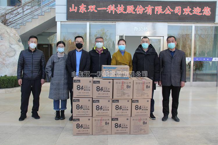 阳春三月、万物吐绿,在这万物复苏的季节,2020年3月19日民营企业高质量发展服务队德城区一队乘着春风为山东双一科技股份有限公司送来了84消毒液、洗手液等疫情防控物资。