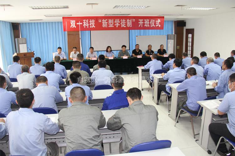 2020年9月28日,山东双一科技股份有限公司与德州走四方高级技工学校联合举办的新型学徒制培训班正式开班。德城区人社局人才服务中心主任张杰,德州走四方高级技工学校副校长王敏,山东双一科技股份有限公司总经理姚总出席开班仪式并发表讲话。