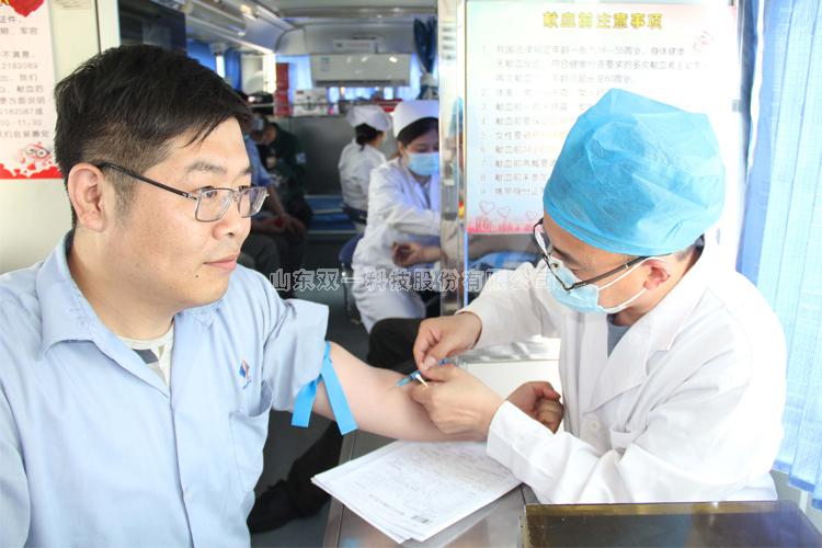 上午8点30分,4辆采血车分别驶入双一科技总部、武城分公司、陵县分公司,在工作人员的引导下,双一科技参与义务献血的广大职工有序地填表、排队、验血、献血,整个过程有条不紊的进行。