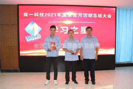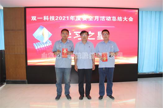 7月20日,山东双一科技股份有限公司举办2021年安全月活动总结大会,并为获奖单位和个人颁奖。