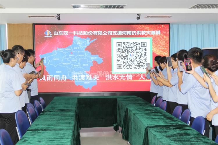 日前,河南遭遇罕见强降雨,郑州、新乡等多地市发生严重水灾,给当地人民群众生命财产带来严重损失,山东双一科技股份有限公司通过工作群向全体职工发出为河南灾区捐款的倡议书,号召全体职工积极发扬一方有难八方支援的优良传统为灾区群众献出一份力量,同时积极与河南省红十字会对接,将募捐来的善款及时转到制定账户。