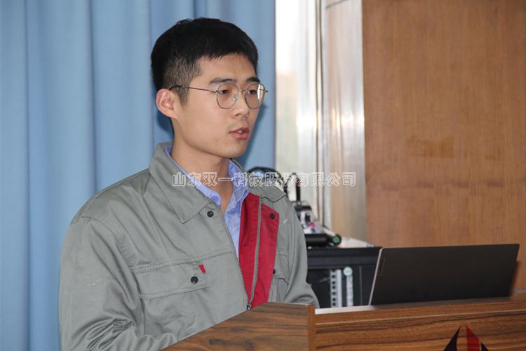 首先是大学生代表席玉浩汇报了实习总结,他讲述了对双一科技从陌生到熟悉,对铺层、灌注各工序从生疏到领会,对复合材料行业从一知半解到融入其中的变化,并表示要深入生产一线,在实际工作中得到公司认可。